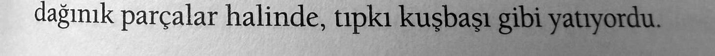 Fatma Aydemir, Dschinns (Cinler)1 romanında, taziye evindeki bir kadının kanepeye uzanıp öylece kalma hâlini “kuşbaşı gibi yatmak” ifadesiyle betimler. Bu ifade, bedenin bütünlüğünü yitirmiş gibi algılandığı, parçalanmış bir duruşu çağrıştırır.